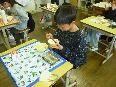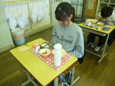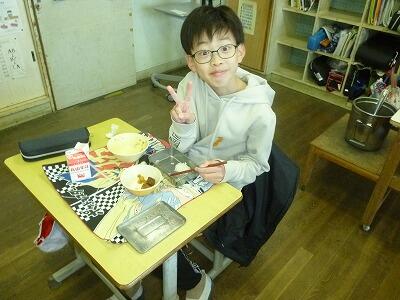 今、自分の量の給食を残さずに食べる取組をしています。5・6年生は、全員完食でした。