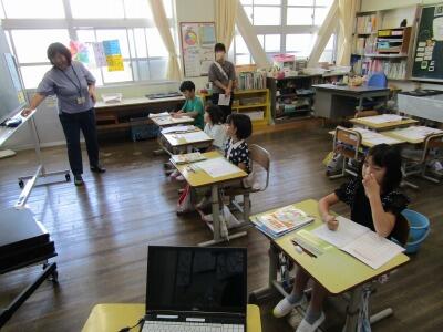 9月11日は、参観日でした。1・2年生は、算数の授業でした。1年生はコップを使った大きさ比べ、2年生は「103-67」のような、繰り下がりが難しい引き算の学習をしていました。