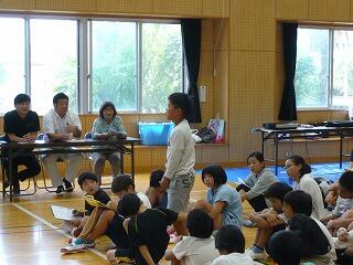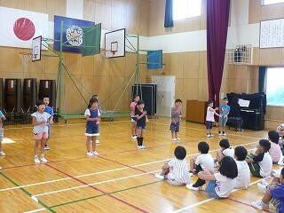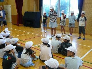 今日の業間は「子ども集会」でした。「子ども集会」は、各学年で学習したことを発表します。今日は、1・2年生の発表でした。