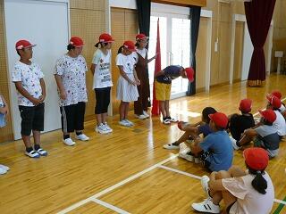 先週までで水泳の学習が終わり、今日から10月27日の運動会に向けた練習が開始されました。今日の業間は、その運動会の結団式でした。2人の団長の紹介の後、ペットボトルを振って、赤団・白団を決めました。校長先生から団長にそれぞれの団旗が渡され、いよいよ赤団対白団の戦いが始まりました。今日は、緊張していた団長やリーダーでしたが、明日からは次第に気合いが高まってくることでしょう。