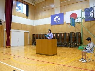 式では、2名の代表児童が3学期の目標を発表しました。2人とも、4月からの次の学年のことを考えて、新たなことにチャレンジしたいという目標でした。