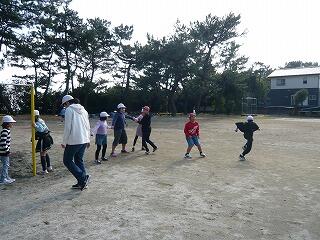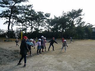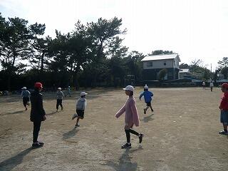 今日は、「警どろ」でした。警察と泥棒に分かれて、みんな必死に遊んでいました。下学年が上学年を追いかけたり、上学年が下学年を助けたり、みんなニコニコ顔で遊んでいました。