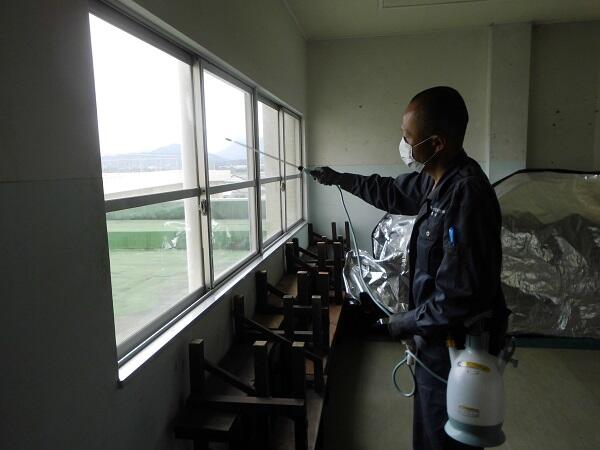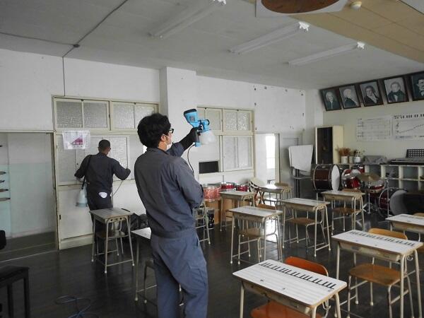 来てくださり、学校内を消毒してくださいました。