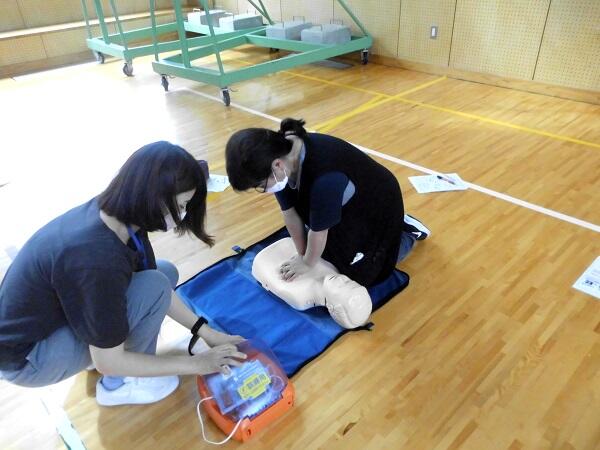 今日の午後は、職員で、心肺蘇生法講習を行いました。