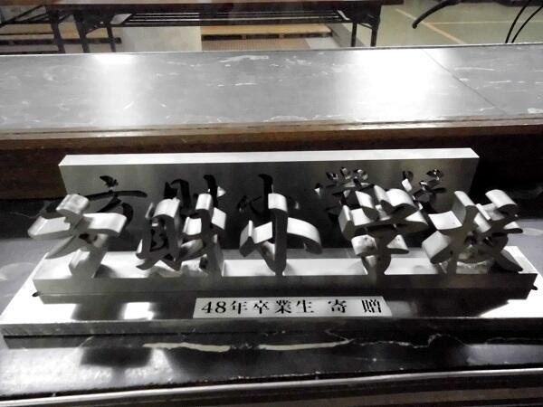 昨日、方財小を昭和48年度に卒業したとおっしゃる方が学校に来てくださり、「還暦を迎える記念に」ということで、写真のような金属加工した学校名のプレートを届けてくださいました。