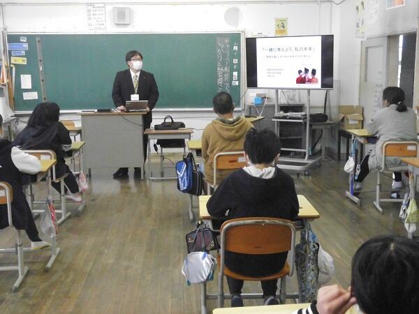 今日は、3校時に、5・6年生に向けて、キャリア教育として講話をしていただきました。延岡市教委の伊東学校支援対策監より、「いっしょに考えよう、私の未来」と題して、世界の中の日本の現状にはじまり数多くの社会的課題がある中、どうやって生きていくか? を子ども達に問いかけながらお話しいただきました。6年生にとっては、中学進学を目前に、これからの学びや生き方に意味を見出すきっかけになったことと思います。