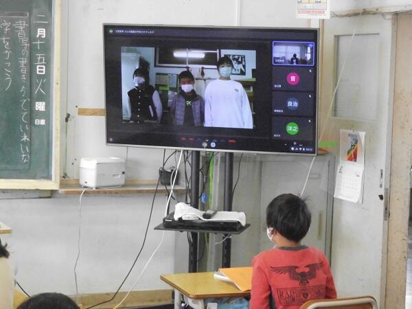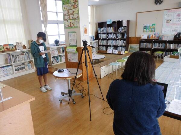 今日のこども集会は、コロナ対策のため、図書室と各教室をオンラインで結んで実施しました。図書室で進行係が生でアナウンスした後、事前に録画した各委員会の発表内容を配信しました。その後、表彰を生配信しました。