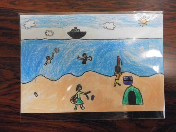 こども集会で表彰した内容は、「未来に残そう青い海・図画コンクール」の受賞作品です。