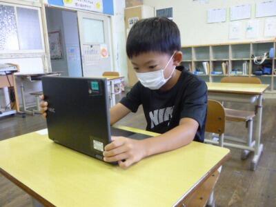 8月5日に、初めての取組として、「オンライン登校日」を行いました。子ども達がタブレット端末を家庭に持ち帰り、ビデオ会議システムを活用しての実施です。