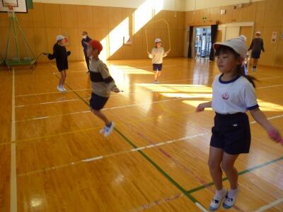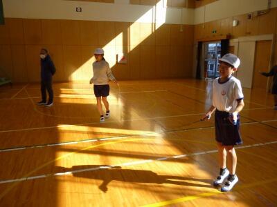 3・4年生の体育の授業の様子です。1分跳びや30秒跳びに挑戦していました。1分跳びはかなりきついのですが、頑張って取り組んでいました。