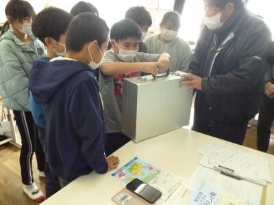1月27日に、延岡間税会青年部と延岡税務署から講師をお招きして、租税教室を行いました。税金の役割や税金がなくなるとどのような社会になるのかなどについて、分かりやすく教えていただきました。また、1億円(1万円札×1万枚)分の紙が入ったジュラルミンケースを持たせていただきました。