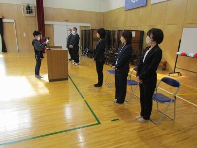 3月30日に、離任式を行いました。10名の職員が在籍していますが、5名が退職及び異動します。