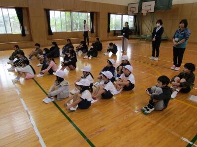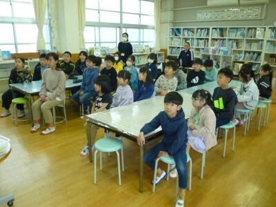4月15日に、図書室の利用の仕方と「よいこのきまり」についての学習を、全校一斉に図書室で行いました。クイズの場面もあり、楽しく学ぶことができました。