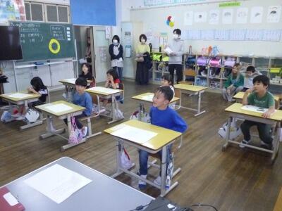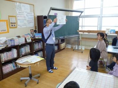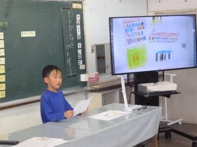 4月26日は、今年度初めての参観日でした。1・2年生は、学校探検をして見つけたことを発表する授業でした。