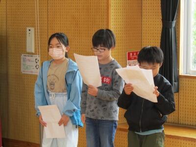 「運営委員会」「放送委員会」「図書委員会」「体育委員会」「保健給食委員会」の子ども達が、活動内容や目標、お願いしたいことなどを発表しました。