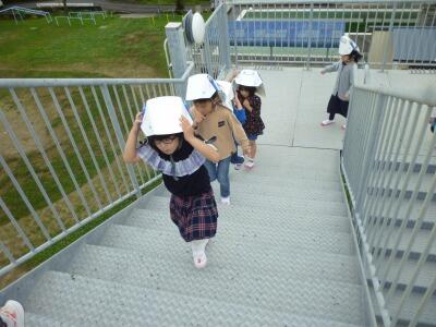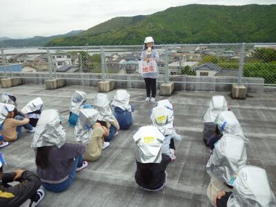 4月22日に、避難訓練(地震・津波)を行いました。地震の後、大津波警報が発令されたという想定で、校舎屋上に避難しました。