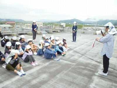 方財小学校の屋上は、18m64㎝です。休みの日でも、夜中でも、大きな地震が発生したら、とにかく方財小学校の屋上に避難するということを指導しました。
