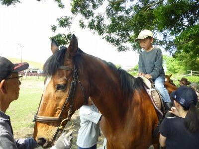 5月25日と26日に、方財町にある「延岡乗馬クラブ」で、乗馬体験がありました。主催は、方財まちづくり協議会です。2日間で保護者も合わせて、23名が参加しました。