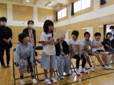 6月6日に、全校集会を行いました。今回は、今月の目標である「歯を大切にしよう」に関連して、養護教諭が、むし歯の治療が終わった子どもを紹介したり、歯磨きをしっかりすることについて分かりやすく説明したりしました。