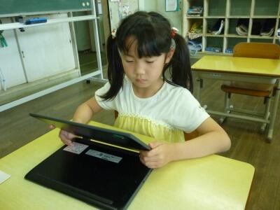 2年生の授業の様子です。タブレット端末を使って、国語と算数の復習問題に取り組んでいました。