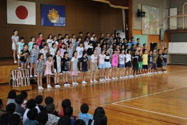 湯浅さんと川島さんが児童代表作文を発表しました。