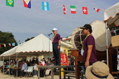 昼休み時間に、ばんば太鼓の音が響いてきました。
