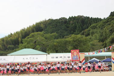 東海小の“オリジナルのぼり”が朝風に揺れていました。