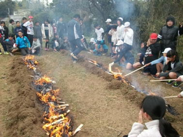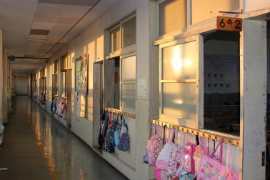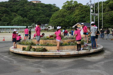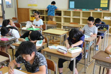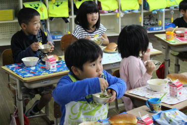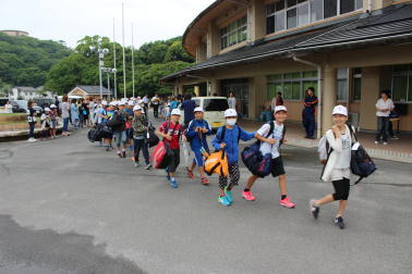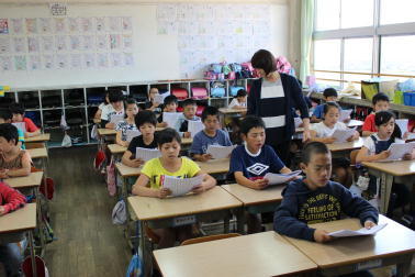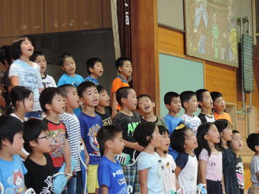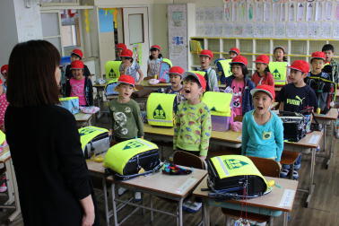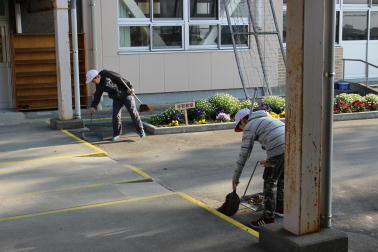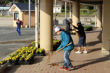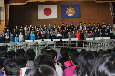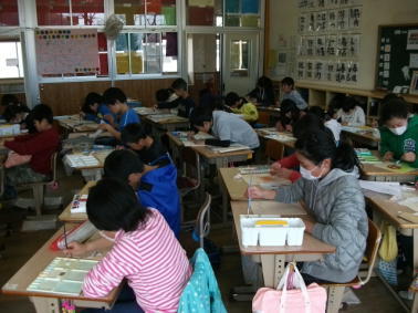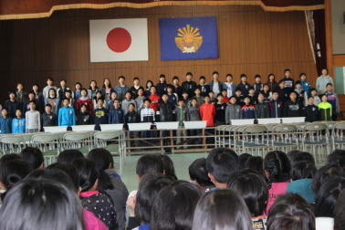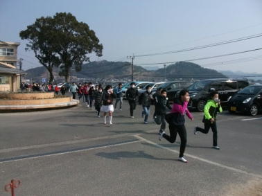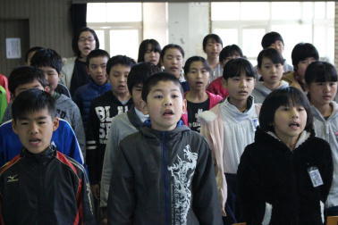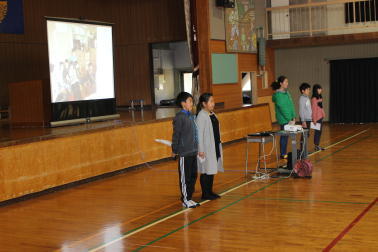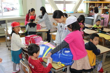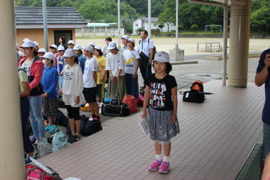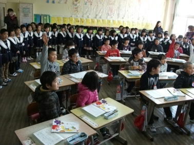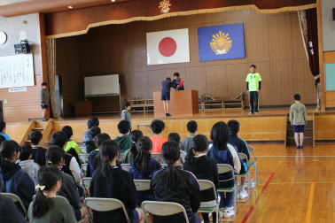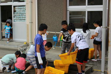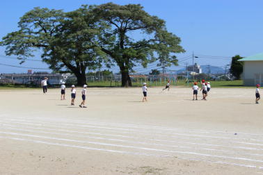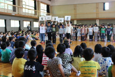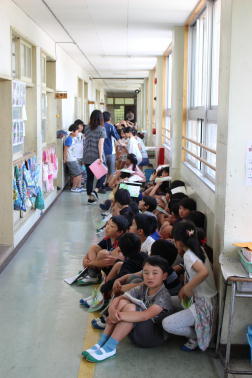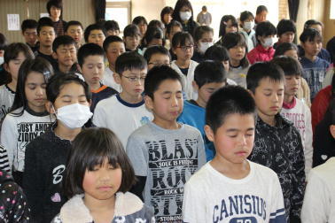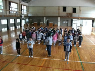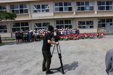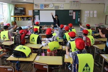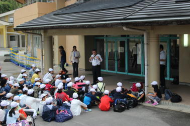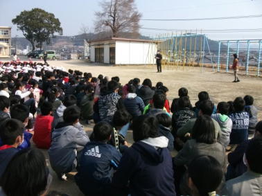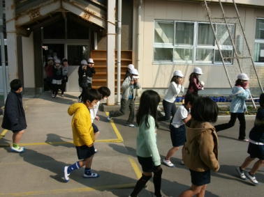 全校児童約400名が、3分50秒で運動場への避難を終えました。