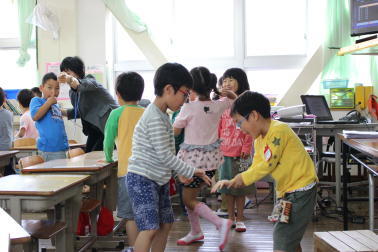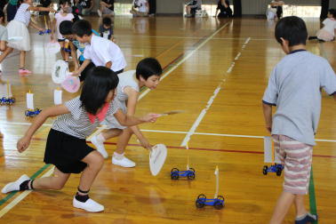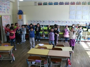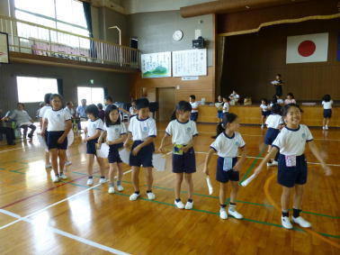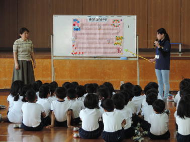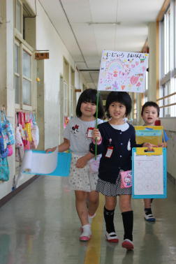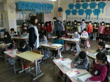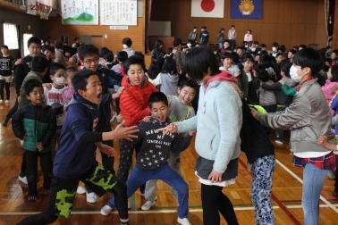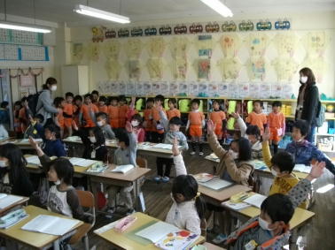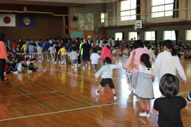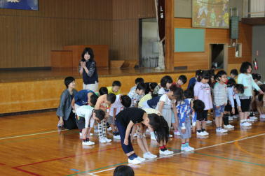 1年生の授業を参観したり、体育館でじゃんけん列車をして遊んだりしました。