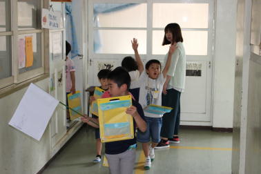 昨日、2年生が小雨のぱらつく中、町探検に出かけました。