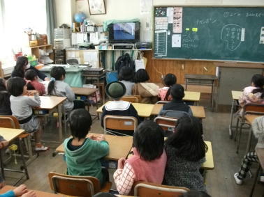 保護者説明会の間、子どもたちは別室でDVDを鑑賞しました。
