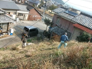 急な勾配の斜面の草刈りはかなりの労力が必要です。
