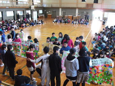 最後に全校児童で歌を歌って、今この時を惜しみました。