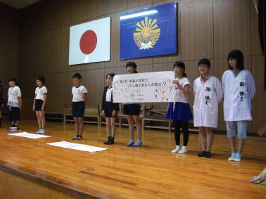 2年生の甲佐さん、4年生の田村さんが代表して1学期の反省を述べました。