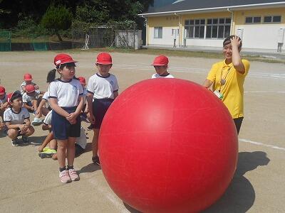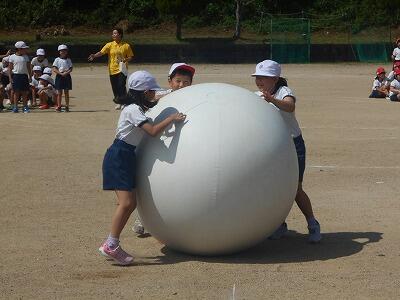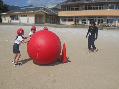 「コーンから離れると時間がかかるよ~」「こっち、こっち、右に回るよ~」 2年生は運動場で団技の練習でした。玉転がしに初めて挑戦です。大玉が思わぬ方向に行ってしまったり、いつの間にか大玉の進む前にいたりなど、アクシデントがたくさんでとっても楽しい…いや、大変そうでした。次回の練習が楽しみですね。