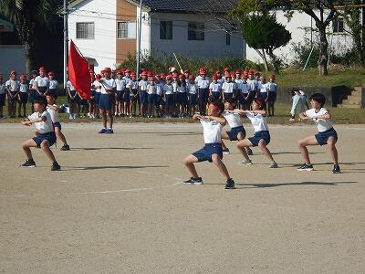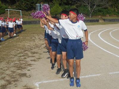 赤団から白団へ、白団から赤団へ、そして学校へ。 エール交換も行いました。腰をビシッと落とした姿、凜々しくきまってます!
