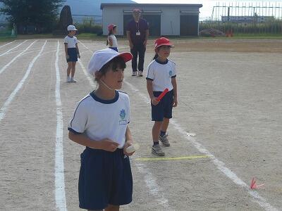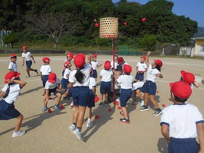 次はA団、B団がゲームをして赤ボール、白ボールが入った袋を選ぶ順番を決めました。まさに運動会前哨戦の盛り上がりです。どちらの団からも応援の声が飛び交いました。