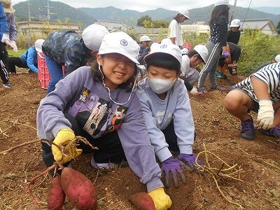 「お家に持って帰ったら、焼き芋にしたり、チップスにしたりしておいしく食べます。今日はありがとうございました。」おわりの会で代表のお友達がお礼を述べました。家族みんなで食べるときっとおいしさも倍増ですね。