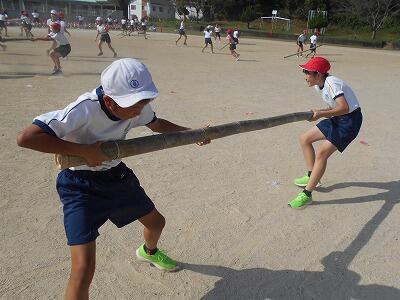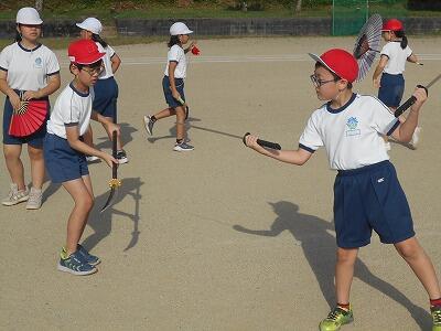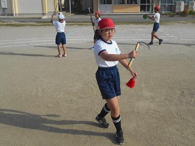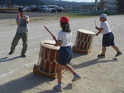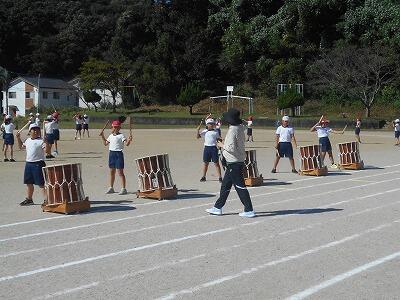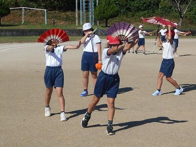4年生は運動場で団七踊りの練習です。道具がたくさんあり、太鼓を出したり、片付けたりも大変ですが、みんなで協力して短時間でてきぱきできるのが、4年生のすごいところです。それぞれの踊りも上手で、衣装を身に付けて踊る本番が本当に楽しみです。