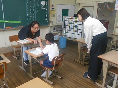 一日を通して子ども達の様子を参観したり、実際に授業支援に入ったりしていただきました。案内していると廊下ですれ違う子ども達が元気にあいさつをしてくれます。さすが「あいさつ ナイス 東海っ子」のみんな、来校された方へ会釈やあいさつが自然にできるのは気持ちがいいですね。