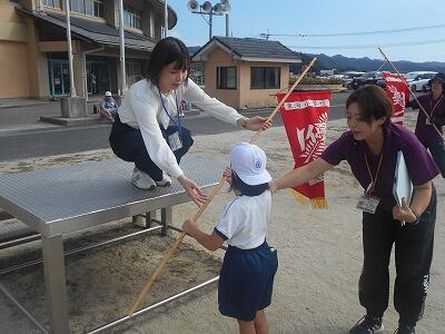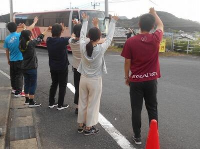 先生達もお見送り、「いってらっしゃ~い、がんばってね~」