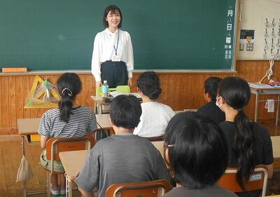 「私はみんなの学習を支える仕事をしています」文部科学省での仕事の内容を笑顔を交えながら分かりやすく説明していただきました。文部科学省は自分たちが学習している内容を決めていることを知ってみんなびっくりです。