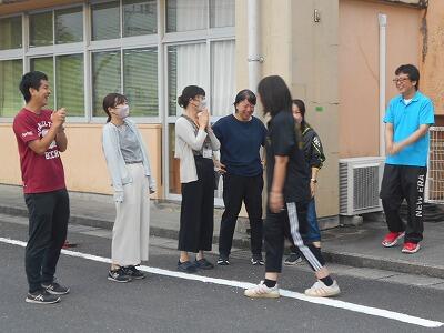 結団式が終わったら、団長の先生のもと、さっそく今日の振り返りです。みんなの目はとても真剣でした。次の目標もしっかりと確認できました。