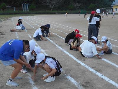 全校リレーの練習も行いました。並び方や入退場の仕方を確認することができました。まだ練習で軽く走っただけですが、選手は本番の緊張感もじんわり感じたと思います。