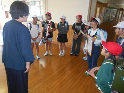 10月15日(水) 下校時に職員玄関で、子ども達が校長先生をぐるりと囲んでいました。輪になっていたのは吹奏楽部のみんなです。先日、参加した福岡でのコンテストで見事、金賞に輝いたうれしい報告をしているのでした。