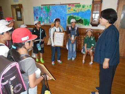 最後に、4年生の感謝の気持ちがたくさん詰まったお手紙をお渡ししました。受け取られると保存会の方もにっこり。気持ちを伝えられてよかったね。