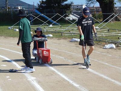 10月17日(金) いよいよ運動会が明日に迫りました。本日は前日準備を行いました。午前中は5・6年生も作業し、午後からはPTA執行部、まかせん会の方々など保護者の皆様にも参加していただきました。お忙しい中、たくさんのご協力、本当にありがとうございました。