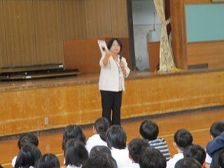 まず「世界で一番、タブレットやスマホを使って、学習している時間が長い国」は「デンマーク」で、「世界で一番、タブレットやスマホを使って、ゲームをしている時間が長い国」は「日本」だということを話されました。そして、過ごしやすい秋の夜長の「時間の使い方」について、絵本を紹介して、読書を勧められました。紹介した絵本は「とべないほたる」です。このシリーズは、感動したり、涙が出そうになったり、うれしい気持ちになったりできる絵本だそうです。