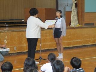 書道やそろばん、アンサンブルで優秀な成績を収めた児童の表彰も行いました。子どもたち、学校の外でも頑張っています!