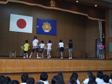 9月16日、久しぶりの雨のため、開、閉会式の練習は体育館で行いました。